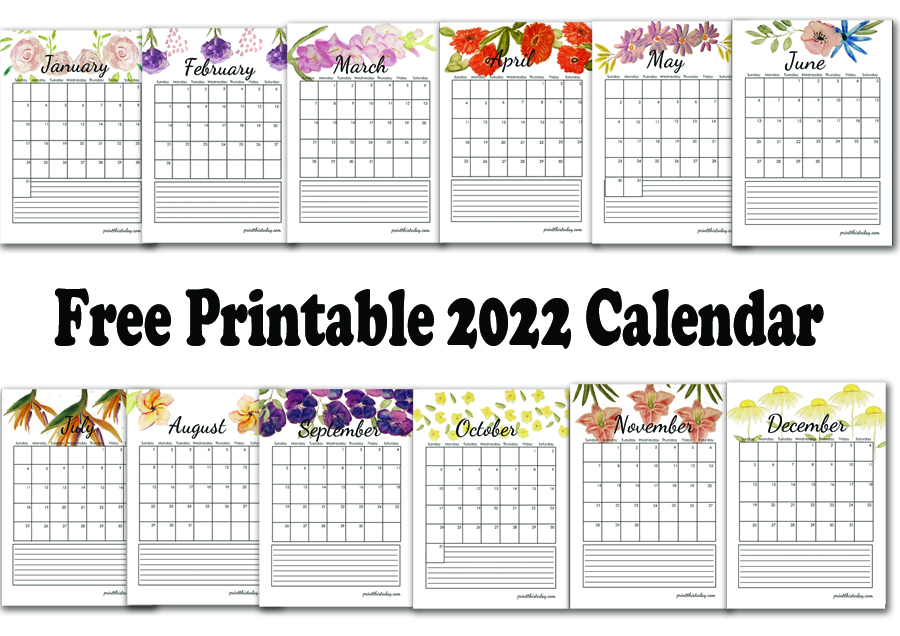 - Free Printable 2022 Floral Calendar