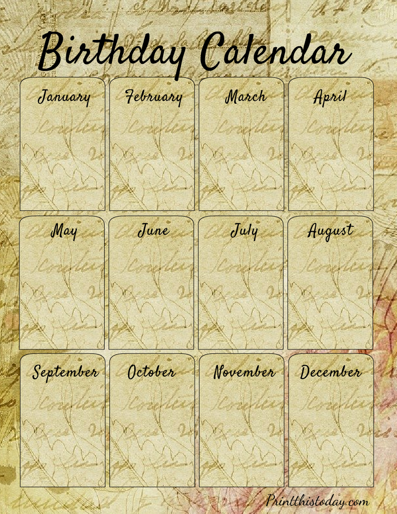- 12 Free Printable Birthday Calendars / Trackers