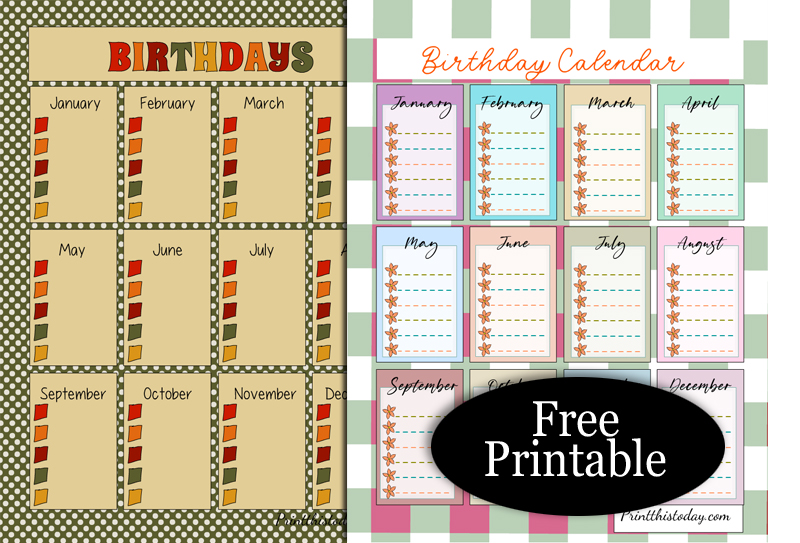 - 12 Free Printable Birthday Calendars / Trackers