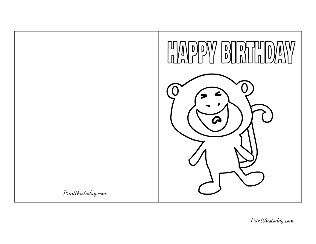 "Cheeky Monkey", Happy Birthday Card to Color Free Printable
