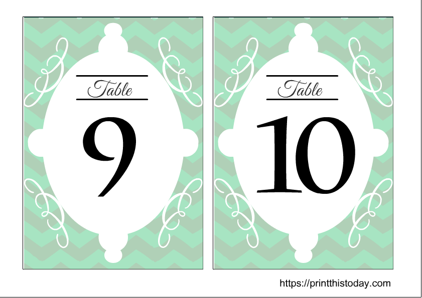 - Free Printable Wedding Table Numbers { Mint Chevron}